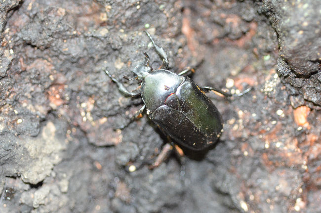 クヌギの樹液を吸いにきたクロカナブンです.。全体が黒くカブトムシの雌と間違えそうです。大きさ26〜32mm程度。